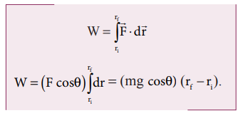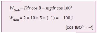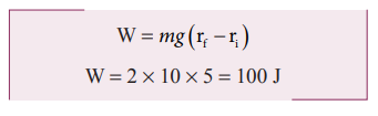 எனவே பொருளின் மீது செயல்படும் புவியீர்ப்பு விசையினால் செய்யப்பட்ட வேலை நேர்க்குறி மதிப்பைப் பெறுகிறது.