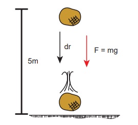 மேலும் பொருளானது படத்தில் காட்டியுள்ளவாறு கீழ்நோக்கிய புவியீர்ப்பு விசையின் (
