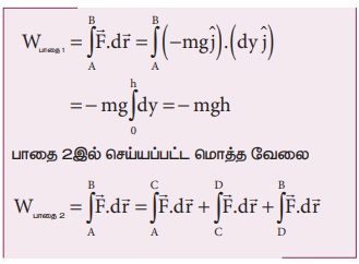 புவியீர்ப்பு விசையானது ஆற்றல் மாற்றா விசை என்பதால் புவியீர்ப்பால் பொருளின் மீது செய்யப்பட்ட வேலை அதனை கொண்டு சென்ற பாதையைச் சார்ந்ததல்ல.