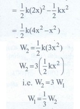 1. தொடக்கத்தில் நீட்டப்படாத நிலையில் உள்ள ஒரு சுருள்வில் முதலில் x தொலைவுக்கும் மீண்டும் x தொலைவுக்கும் நீட்டப்படுகிறது. முதல் நேர்வில் செய்யப்பட்ட வேலை W1 ஆனது இரண்டாவது நேர்வில் செய்யப்பட்ட வேலை W2 ல் 1/3 பங்கு இருக்கும். சரியா? தவறா?