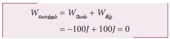 (c) புவியீர்ப்பு விசையினால் மேல்நோக்கிய மற்றும் கீழ்நோக்கிய இயக்கத்தில் செய்யப்பட்ட மொத்தவேலை மற்றும் முடிவின் இயற்பியல் முக்கியத்துவத்தைக் குறிப்பிடுக.