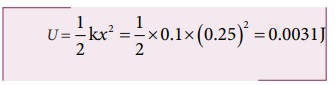 ஒரு சுருள்வில்லுடன் இணைக்கப்பட்ட 2 kg நிறையுள்ள ஒரு பொருள் அதன் சமநிலையிலிருந்து x = 10 m என்ற தொலைவுக்கு நகர்த்தப்படுகிறது. சுருள்வில் மாறிலி k = 1 N m-1 மற்றும் பரப்பு உராய்வற்றதாகக் கருதுக.