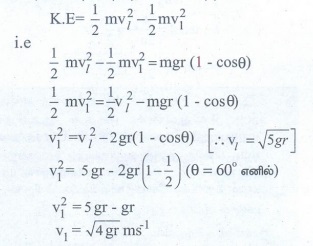 வட்டத்தின் மேற்புள்ளியை அடைவதற்கான அதிகரிக்கும் நிலையாற்றல் P.E = mgr(1 - cos θ) அதே அளவு குறையும் இயக்க ஆற்றல்