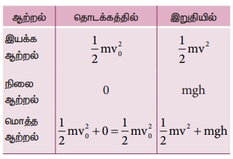ஆற்றல் மாறா விதியின் படி தொடக்க மற்றும் இறுதி மொத்த ஆற்றல்கள் சமமாகும்.