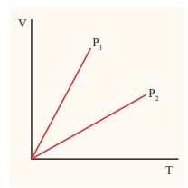 V-T வரைபடத்தின் சாய்வு, அழுத்தத்திற்கு எதிர்விகிதத் தொடர்புடையது ஆகும். சாய்வு பெருமமாக இருப்பின், அழுத்தம் குறைவானதாகும்.