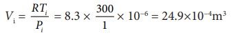 Vi. ஐக் கணக்கிட, நல்லியல்பு வாயுச் சமன்பாட்டை தொடக்க நிலைக்கும் பயன்படுத்த வேண்டும்