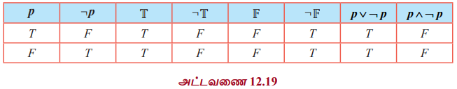 (i) p ∨ ¬ p ≡ T மற்றும் p ∧ ¬ p ≡ F