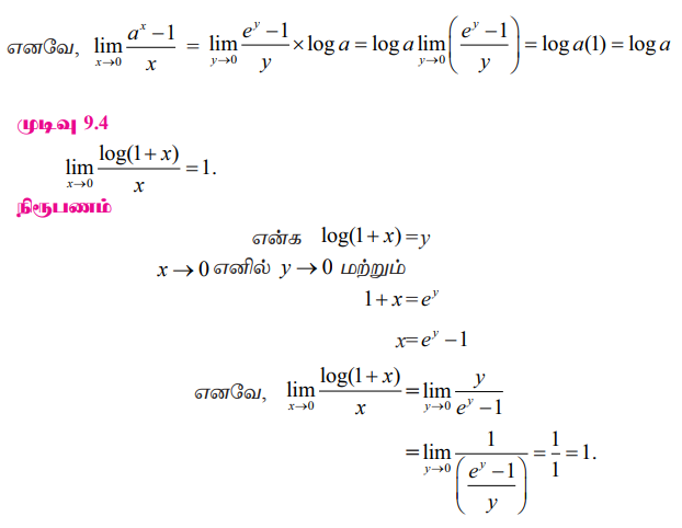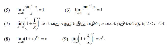 11 வது கணக்கு : அலகு 9 : வகை நுண்கணிதம் எல்லைகள் மற்றும் தொடர்ச்சித் தன்மை DIFFERENTIAL CALCULUS LIMITS AND CONTINUITY : மற்ற முக்கிய எல்லைகள் (Some important other limits) - கணக்கு : 11 ஆம் வகுப்பு