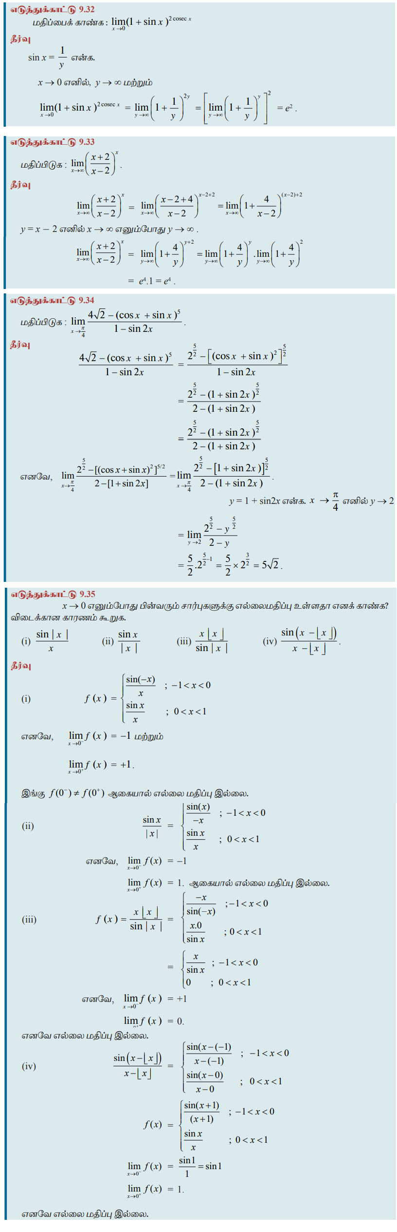 11 வது கணக்கு : அலகு 9 : வகை நுண்கணிதம் எல்லைகள் மற்றும் தொடர்ச்சித் தன்மை DIFFERENTIAL CALCULUS LIMITS AND CONTINUITY