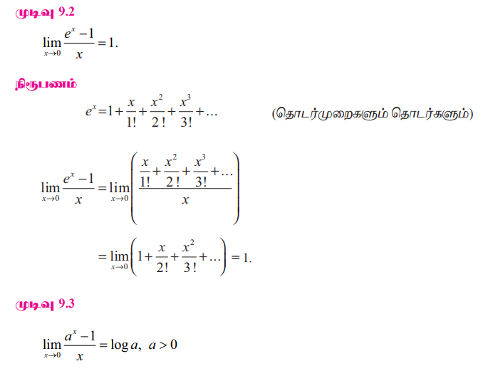 நிரூபணம் இல்லாத சில முக்கிய எல்லைகள் (Some important limits without proof) முடிவுகள் 9.5 முதல் 9.9