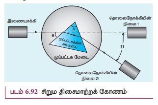 வேறுபாடு சிறுமதிசைமாற்றக் கோணத்தைக் (D) கொடுக்கும். முப்பட்டகம் செய்யப்பட்ட பொருளின்