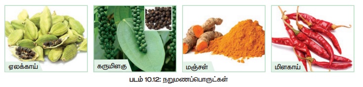 உணவுக்குச் சுவையூட்ட உதவுகின்றன. நறுமணப்பொருட்கள் நறுமணத் தாவரப் பொருளாகவும், இனிப்பு