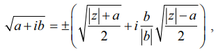 அதாவது √[a + ib] = x + iy இங்கு x, y ∈ ℝ
