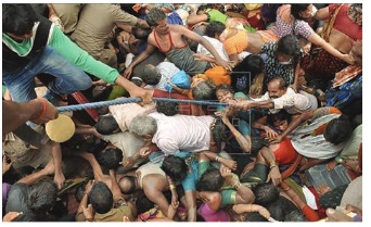 வளர்ந்து வரும் நாடுகளில் பெரிய மதம் சார்ந்த கூட்டங்களில் தான் குறிப்பாக கூட்ட நெரிசல் அபாயம் ஏற்படுகிறது. 2013ல் இந்தியப் பத்திரிகையொன்று குறிப்பிட்டபடி இந்தியாவில் 79% கூட்ட நெரிசல் மதம் சார்ந்த விழாக்களிலேயே நடைபெற்றுள்ளது.