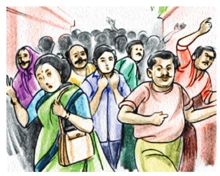 கூட்ட நெரிசலில் கீழே விழுந்துவிட்டால் கைகளால் உன் தலையை மறைத்துக் கொண்டு கருவிலிருக்கும் குழந்தையைப்போல உடலை வளைத்துக் கொள்ள வேண்டும். முதலில் உங்கள் நுரையீரல் இருக்கும் நெஞ்சுப்பகுதியை கூட்டத்திற்குக் காட்டுவதைத் தவிர்க்க வேண்டும். மீண்டும் எழுவதற்கு வாய்ப்புக் கிடைக்குமா என்று விடாமல் முயற்சிக்க வேண்டும்.