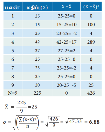 5. (∑x2/n) இன் வர்க்க மூல மதிப்பே திட்ட விலக்கமாகும்.