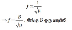 கொடுக்கப்பட்ட அதிர்வுறும் கம்பியின் நீளம் l (நிலையானது) மற்றும் இழுவிசை T (நிலையானது) எனில் அதிர்வெண், ஓரலகு நீளத்திற்கான நிறை μ இன் இருமடிமூலத்திற்கு எதிர்த்தகவில் அமையும்.