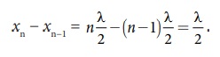 அடுத்தடுத்த எதிர் கணுக்களுக்கிடையேயான தூரத்தை கீழ்க்கண்டவாறு கணக்கிடலாம்.