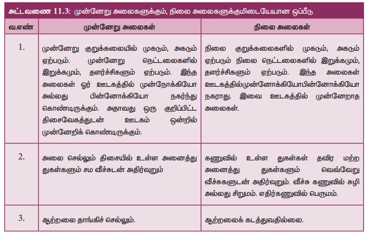 இதுவே, நிலை அல்லது நிலையான அலைகள் எனப்படும். இது முன்னோக்கியோ அல்லது பின்னோக்கியோ நகராது. ஆனால் முன்னேறு அலை அல்லது இயங்கு அலை முன்னோக்கியோ அல்லது பின்நோக்கியோ நகரும். சமன்பாடு (11.63) யை கீழ்க்கண்டவாறு சுருக்கமாக எழுதலாம்.