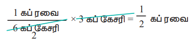 மாற்றாக, 3 கப் ரவையைக் கொண்டு தயார் செய்ய இயலும் கேசரியின் அளவினை பின்வருமாறு கணக்கிடலாம்.