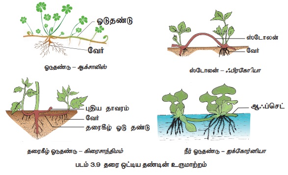 தாவரவியல் - தரை ஒட்டியதண்டின் உருமாற்றம் | 11th Botany : Chapter 3 : Vegetative Morphology of Angiosperm