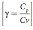 • அழுத்தம் மாறா மோலார் தன்வெப்ப ஏற்புத்திறனுக்கு (Cp) மற்றும் பருமன் மாறா மோலார் தன்வெப்பஏற்புத்திறனுக்கும் (Cv) உள்ள விகிதம்