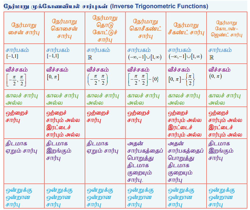 நேர்மாறு முக்கோணவியல் சார்புகளின் பண்புகள் (Properties of Inverse Trigonometric Functions)