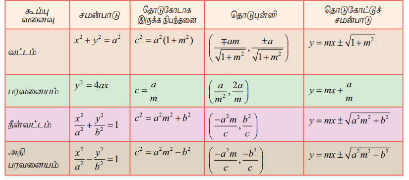 y = mx + c என்ற நேர்க்கோடு கூம்பு வளைகளின் தொடுகோடாக இருக்க நிபந்தனை
