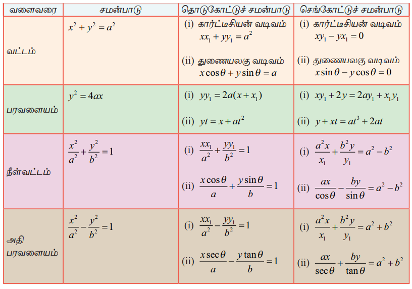 (6) (x1, y1) என்ற புள்ளியில் x2 + y2 + 2gx + 2fy + c = 0 என்ற வட்டத்தின் செங்கோட்டுச் சமன்பாடு yx1 − xy1 + g(y − y1) − f (x − x1) = 0.