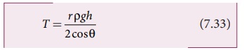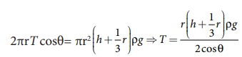 இங்கு θ என்பது சேர்கோணம், r என்பது குழாயின் ஆரமாகும். ρ என்பது நீரின் அடர்த்தி மற்றும் h என்பது குழாயில் நீர் மேலேறும் உயரம் எனில்