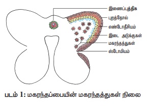 நோக்கவும். மகரந்தப்பையின் பல்வேறு வளர்ச்சி நிலைகளை உற்றுநோக்கிப் பதிவு செய்யவும்.