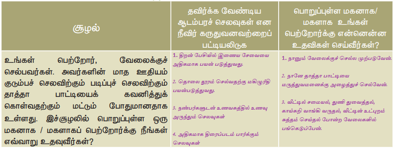 பொறுப்புள்ள மகனாக / மகளாக உங்கள் பெற்றோர்க்கு என்னென்ன உதவிகள் செய்வீர்கள்?