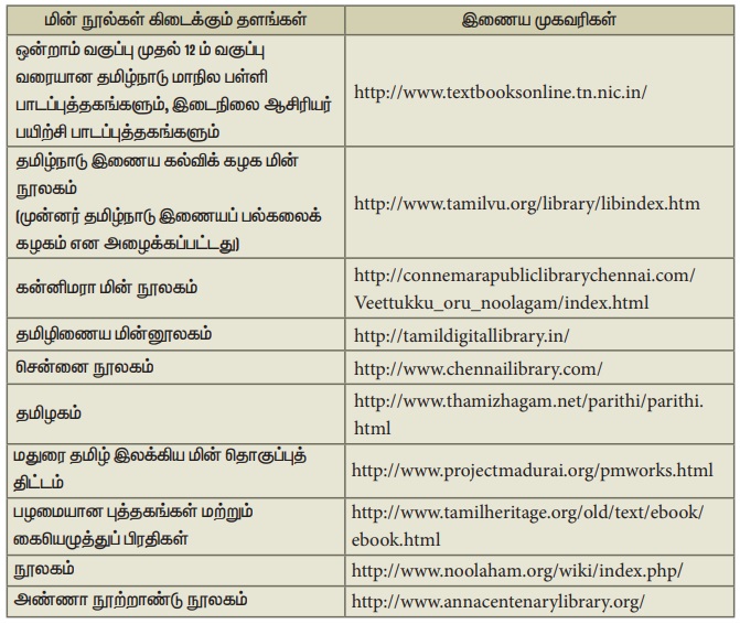 மின் நூல்கள் கிடைக்கும் தளங்கள் : இணைய முகவரிகள்