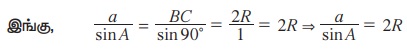 குறிப்பு: (i) சைன் விதியை மூன்று சமன்பாடுகளின் தொகுப்பாக எழுதலாம்.