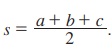 இங்கு, s என்பது ∆ABC இன் அரை சுற்றளவு, அதாவது