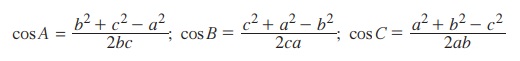 (iv) கொசைன் விதியின் பொருள்: நேர்வழித்தடம் குறைந்த தூரத்தையுடையது. இதன் விளக்கம் பின்வருமாறு.
