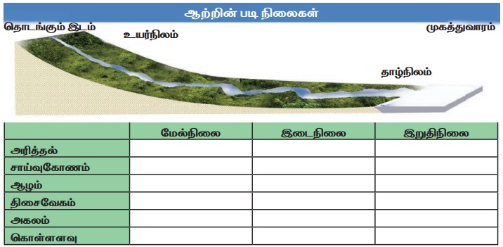கீழே கொடுக்கப்பட்டுள்ள ஆற்று நிலத்தோற்ற படத்தில் நிலத்தோற்றங்களின் பெயர்களை குறிக்கவும்.