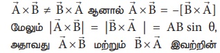 (ii) இரண்டு வெக்டர்களின் வெக்டர் பெருக்கல் பரிமாற்று விதிக்கு உட்படாது அதாவது