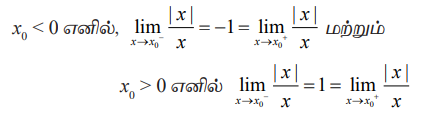 மேலும் x < x0 மற்றும் x > x0 என்பவை முறையே “x → x0− ” மற்றும் எனக் “x → x0+ ” குறிக்கப்படுகிறது.
