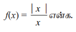 x = 0 என்ற மதிப்பு f(x) என்ற சார்பின் சார்பகமான ℝ \{0}−ல் இல்லை. வரைபடத்தைக் கவனிக்கவும். வரைபடத்தில் இருந்து x−ன் மிகை மதிப்புகளுக்கு,