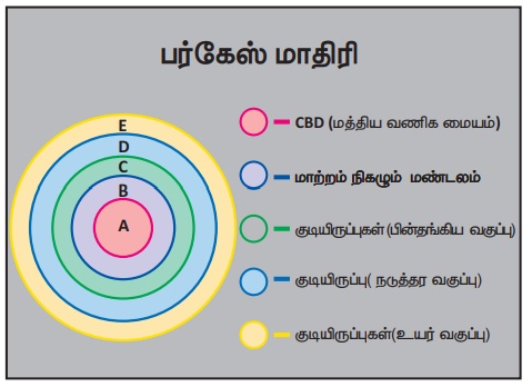 மனிதக் குடியிருப்புகள் - புவியியல் - மைய மண்டல கோட்பாடு | 12th Geography : Chapter 2 : Human Settlements