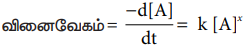 x என்பது வினைவகை. மேற்கண்டுள்ள சமன்பாடு ஒரு வகைக்கெழுச் சமன்பாடாகும். இச்சமன்பாட்டில் -d[A] / dt இடம் பெற்றுள்ளதால் இச்சமன்பாட்டினைப் பயன்படுத்தி எந்த ஒரு நேரத்திலும் வினைவேகத்தைக் கண்டறியலாம். எனினும் மேற்கண்டுள்ள சமன்பாட்டினைப் பயன்படுத்தி