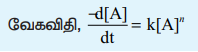 A என்ற ஒரு வினைபொருள் மட்டுமே பங்கேற்கும் nth வகை வினைக்கான பொதுவான வினைவேகச் சமன்பாடு