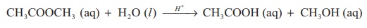 CH3 COOCH3 (aq) + H2 O (l) → H + → CH3COOH (aq) + CH3OH (aq)
