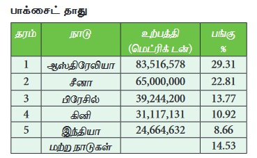 முக்கியமான பாக்சைட் உற்பத்தி செய்யும் நாடுகளாகும். உலகின் மிகப்பெரிய பாக்சைட் உற்பத்தியாளர்கள்