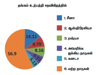 அமெரிக்க ஐக்கிய நாடுகள் மற்றும் கனடா ஆகியவை உலகின் தங்க உற்பத்தியில் முன்னணியில்
