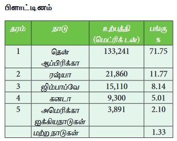 76% உற்பத்தியைக் கொடுக்கிறது. நசுக்குதல், செறிவு, வறுத்தல், உருகுதல் மற்றும் சுத்திகரிப்பு