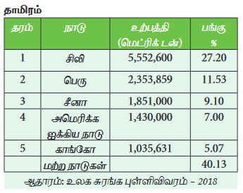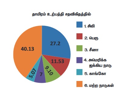 பெரு 11.53 சதவீத தாமிரத்தை உற்பத்தி செய்கிறது. இந்தியா உலக தாமிர உற்பத்தியில்