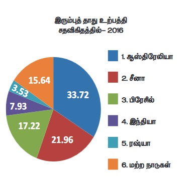 ஆகும். சீனா, பிரேசில், இந்தியா மற்றும் ரஷ்யா போன்றவை இரும்புத்தாது உற்பத்தியில்