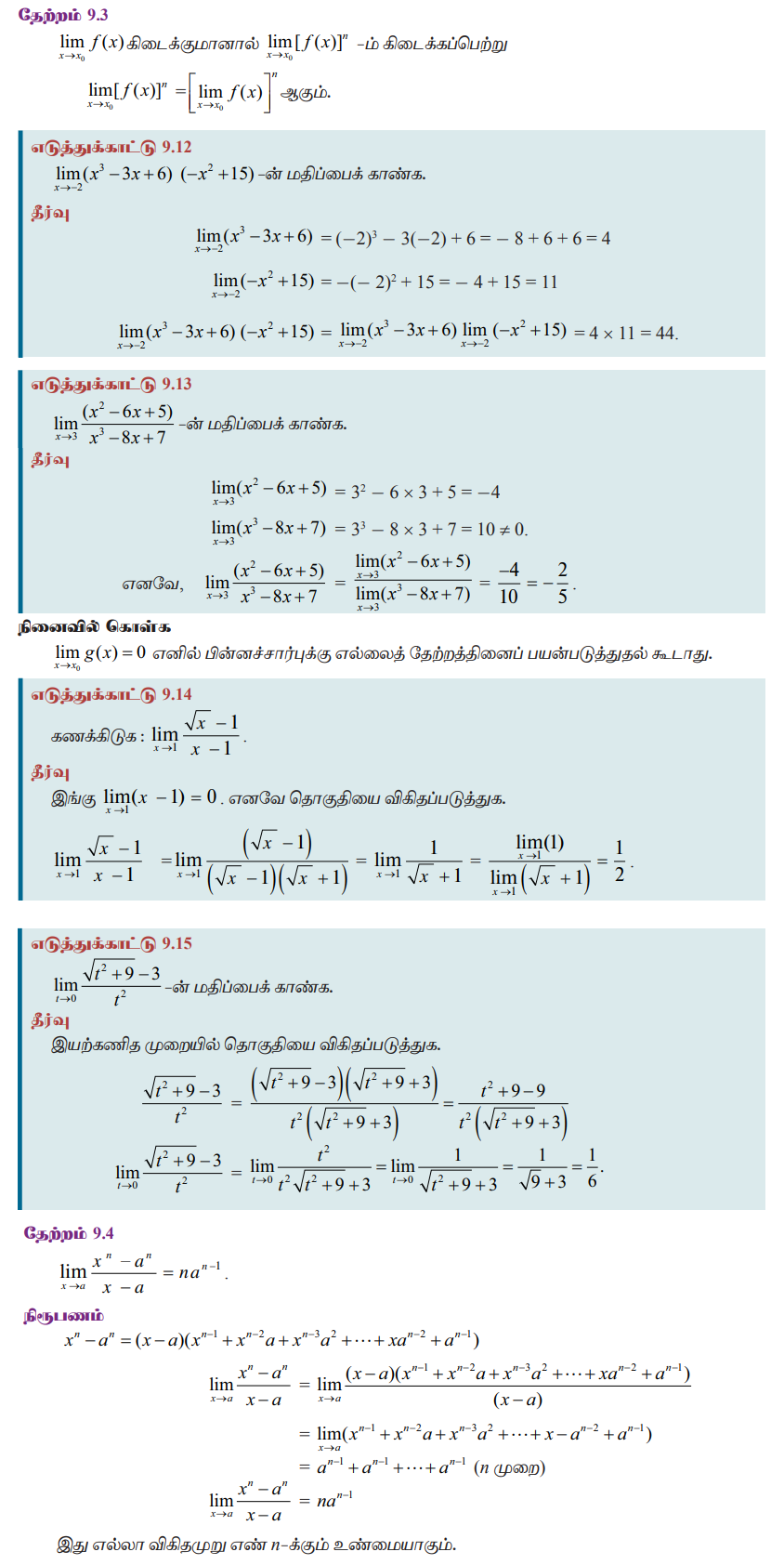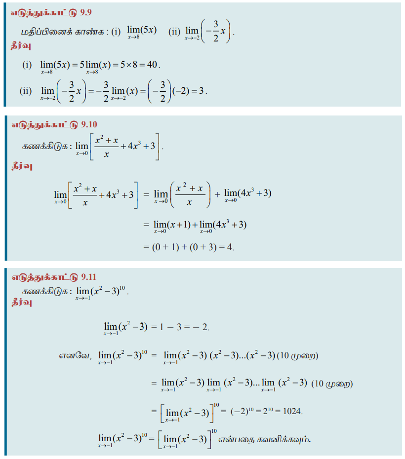 கணக்கு - எல்லைகள் மீதான தேற்றங்கள் (Theorems on limits) | 11th Mathematics : UNIT 9 : Differential Calculus Limits and Continuity